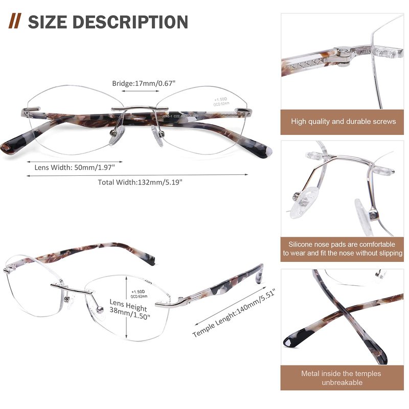 AQWANO Rimless Computer Reading Glasses Women Fashion Designer Blue Light Blocking with UV400 Protect Clear Lens Pattern Frame Ladies Readers,3.5