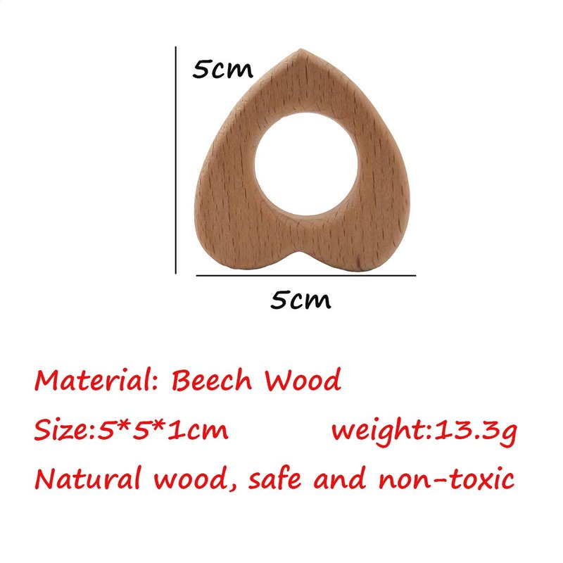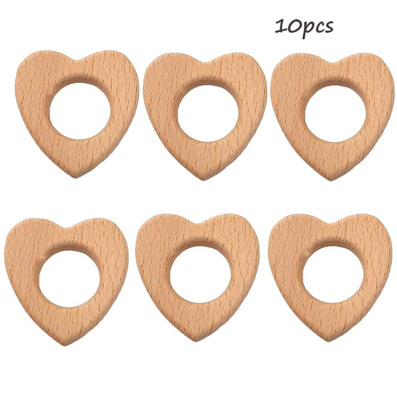 Arakierst 10pcs Organic Wood Heart Teether Pure Natural Animal Shape Beech Wooden Teether Handmade Grasping Pattern DIY Pacifier Chain Pendant