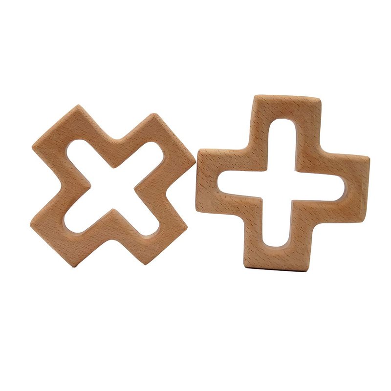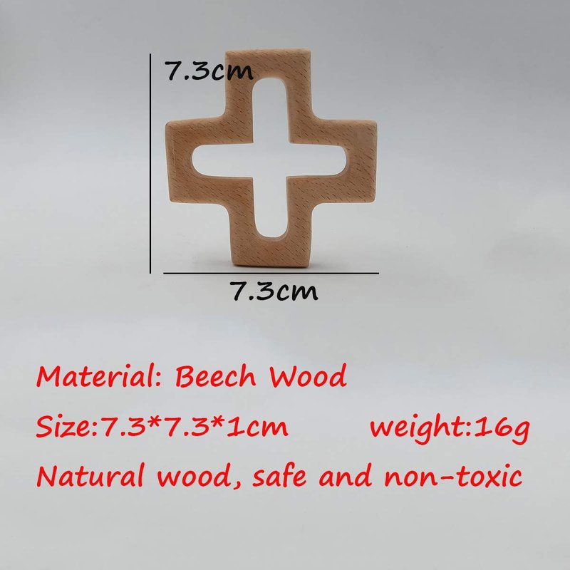Arakierst 2pcs Organic Wood Cross Pure Natural Animal Shape Toys Beech Wooden Handmade Grasping Pattern DIY Pacifier Chain Pendant