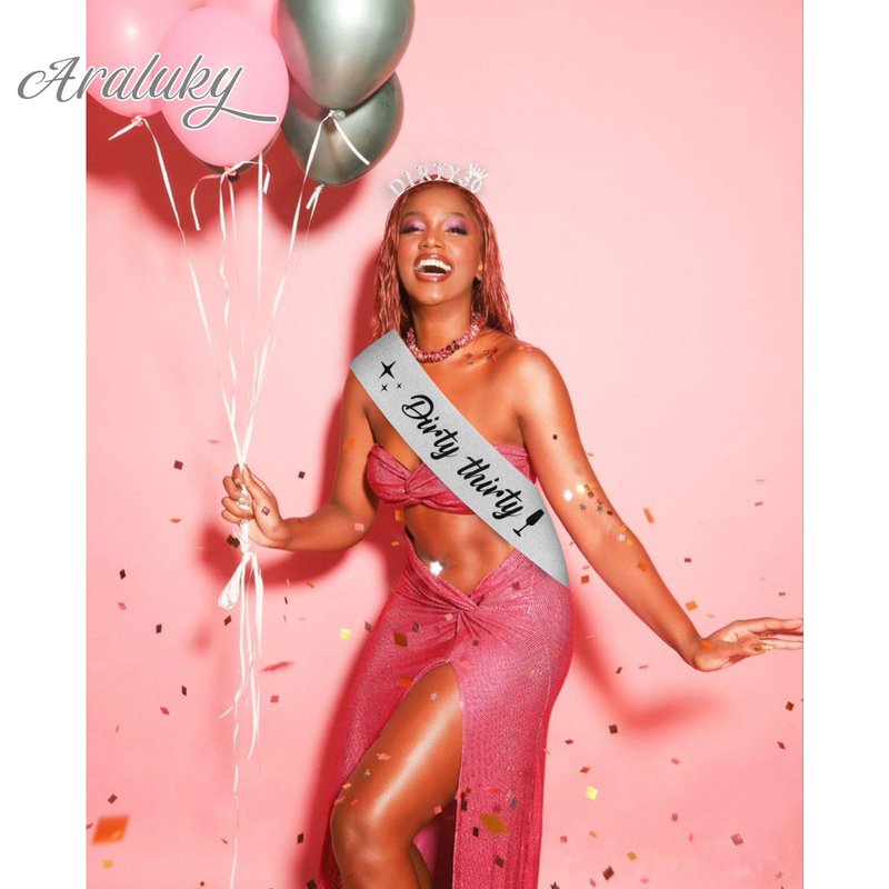 Araluky Dirty 30th Birthday Decorations for Her with 30th Birthday Sash for Women & Rhinestone Dirty Thirty Birthday Headband, Happy 30th Birthday Decorations for Women 30th Birthday Gifts for Her