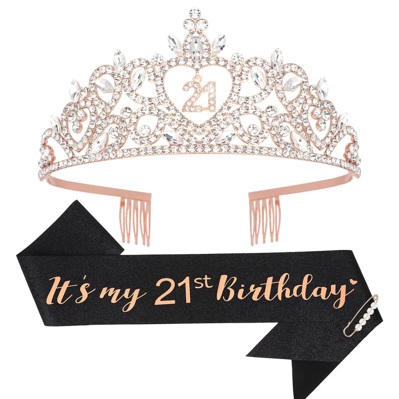 - High Quality Material: The 21st birthday tiara for women is made of high quality alloy and rhinestone, which is strong and durable and comfortable to wear. The 21 birthday sash for girls is made of soft fabric iron on with glitter and printed with "It's My 21st Birthday".