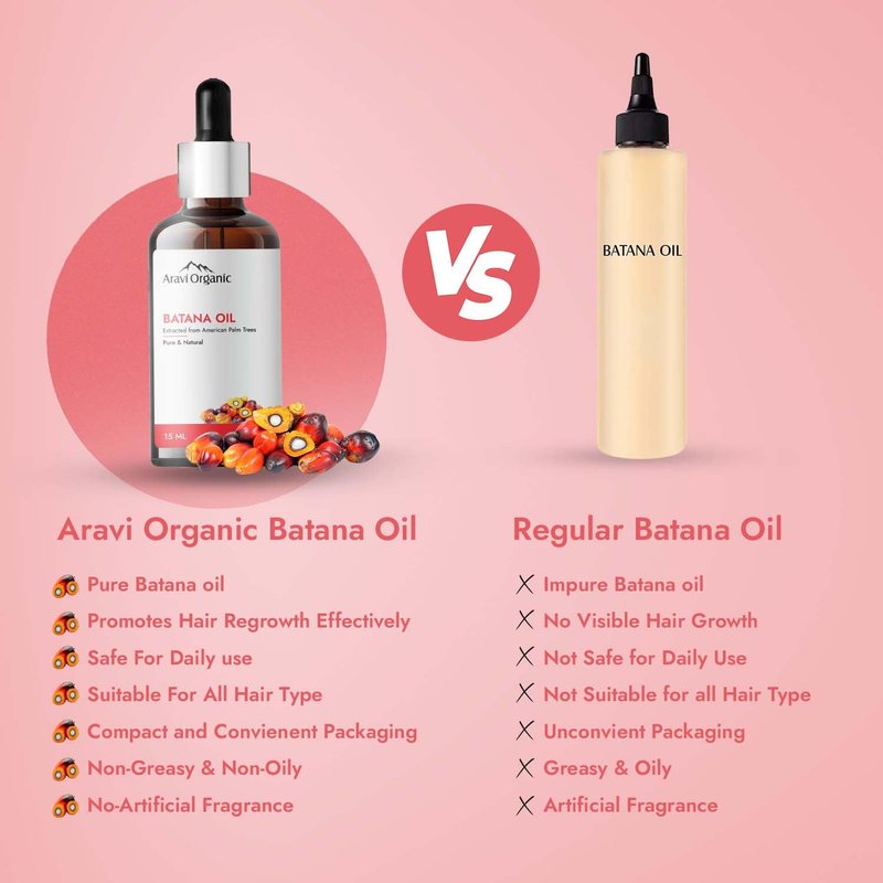 Aravi Organic Batana oil is derived from the nuts of the American palm tree (Elaeis oleifera), native to Central and South America. It is renowned for its high content of essential fatty acids and antioxidants, making it a highly beneficial oil for healthy hair growth. Here are some key points about Batana oil and its strengths. Overall, Batana oil is highly valued for its natural and effective benefits for hair, making it a popular choice among those seeking natural beauty solutions.