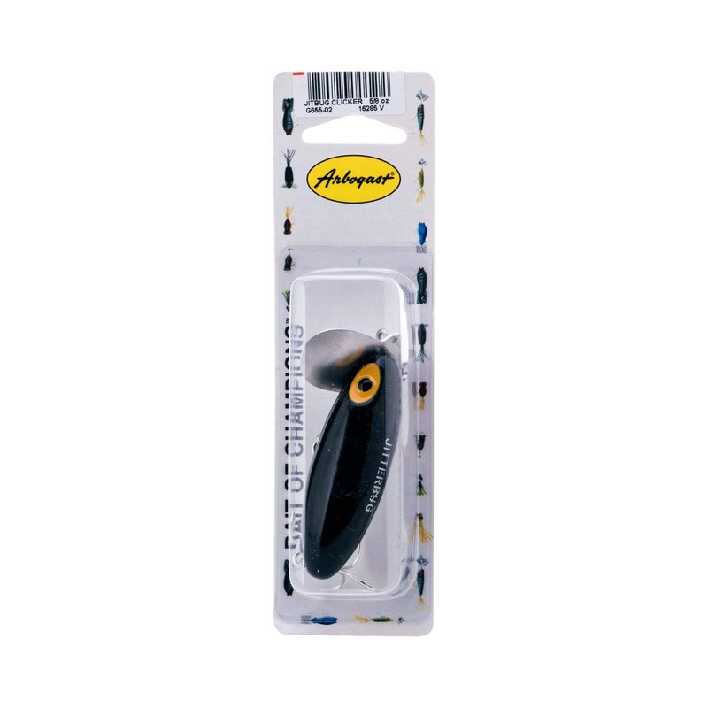 Arbogast Jitterbug Topwater Bass Fishing Lure - Excellent for Night Fishing, Black, G655 Clicker (3 in, 5/8 oz)