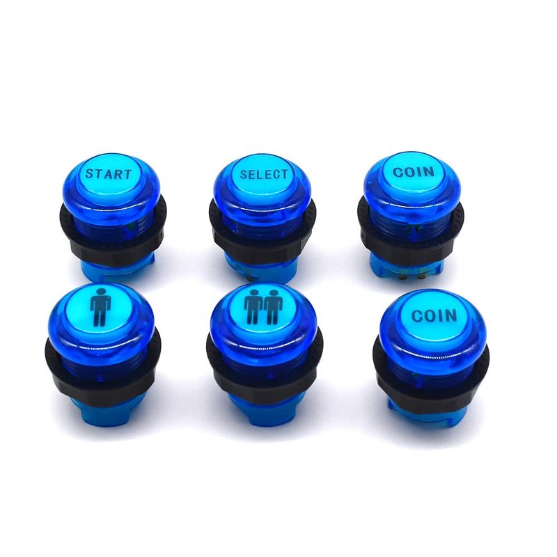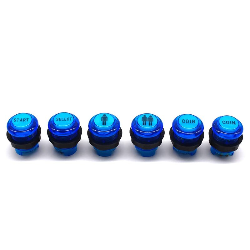 Arcity 6 Pcs/Lot 28mm Arcade LED Push Buttons Illuminated Player 1P 2P Coin Start Select Lit Blue with Microswitch for Arcade Machine Games Console Parts 5V