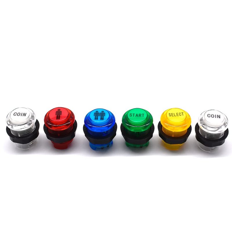 Arcity 6 Pcs/Lot 28mm Arcade LED Push Buttons Illuminated Player 1P 2P Coin Start Select Lit Mixed Color with Microswitch for Arcade Machine Games Console Parts 5V