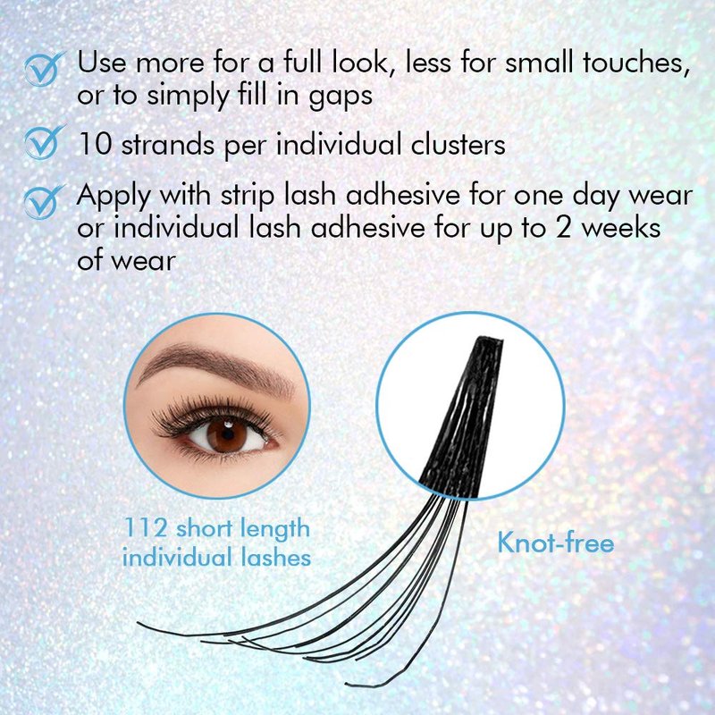 - QUICK AND EASY FAUX LASH APPLICATION: Customise your eyes and add a touch of length with Ardell False Eyelashes Multipack Knot-Free Individuals Short Black. If you love your lashes then you can't go wrong with these blinkers. They look great in the inner corner or across the whole lash line for extra volume, allowing you to create a custom look. Designed to ensure you will apply your individual lashes with ease, that you'll struggle to find better lashes for completely personalized eye makeup!