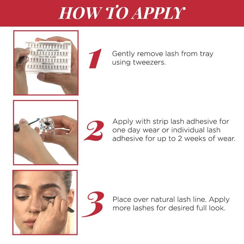 Meticulously handmade, these falsies from Ardell® will look and feel like your own. Each lash cluster is knotted and feathered by hand to achieve the highest quality and is free from harmful ingredients. They are effortless to apply and can be used several times, simply add lash adhesive and expect long-lasting results!