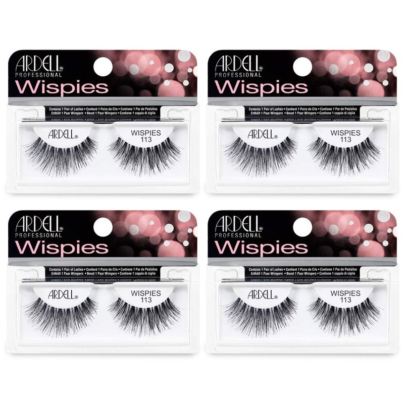 - REUSABLE, CONVENIENT TO APPLY STRIP LASH: Featuring Ardell False Eyelashes Wispies 113 Black comes four packs of reusable artificial lash extensions to get the extended value from this quad pack of falsies. It can last multiple uses with proper care and storage. Saving you time and money, you can easily apply these faux mink lashes to your eyes easily - ideal if you’re in a rush to get ready!