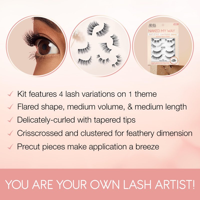 - 4 Takes On 1 Style: Enjoy multiple lash options with four variations of our Ardell Naked 435 faux lashes. This kit allows you to put together your own curated, barely-there, natural-looking lash looks.