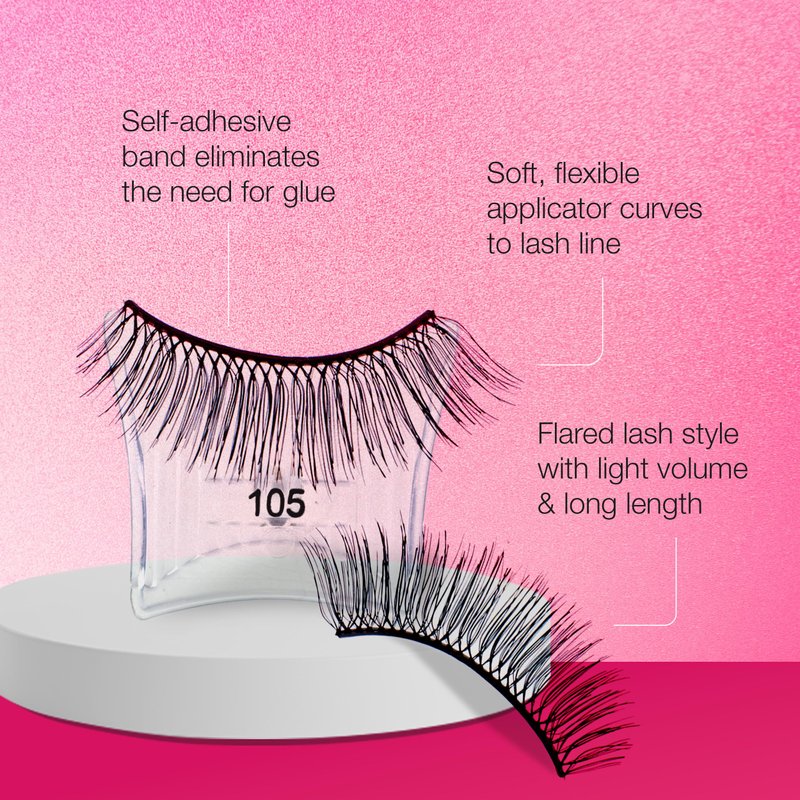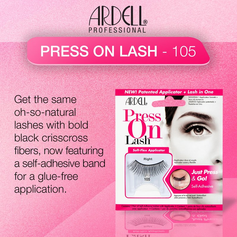 Ardell Self-Adhesive Eyelashes, Press On Lashes 105 with Soft-Flex Applicator - No Lash Glue Needed for Easy Application, Natural Look Lashes, Just Press & Go Lash Kit