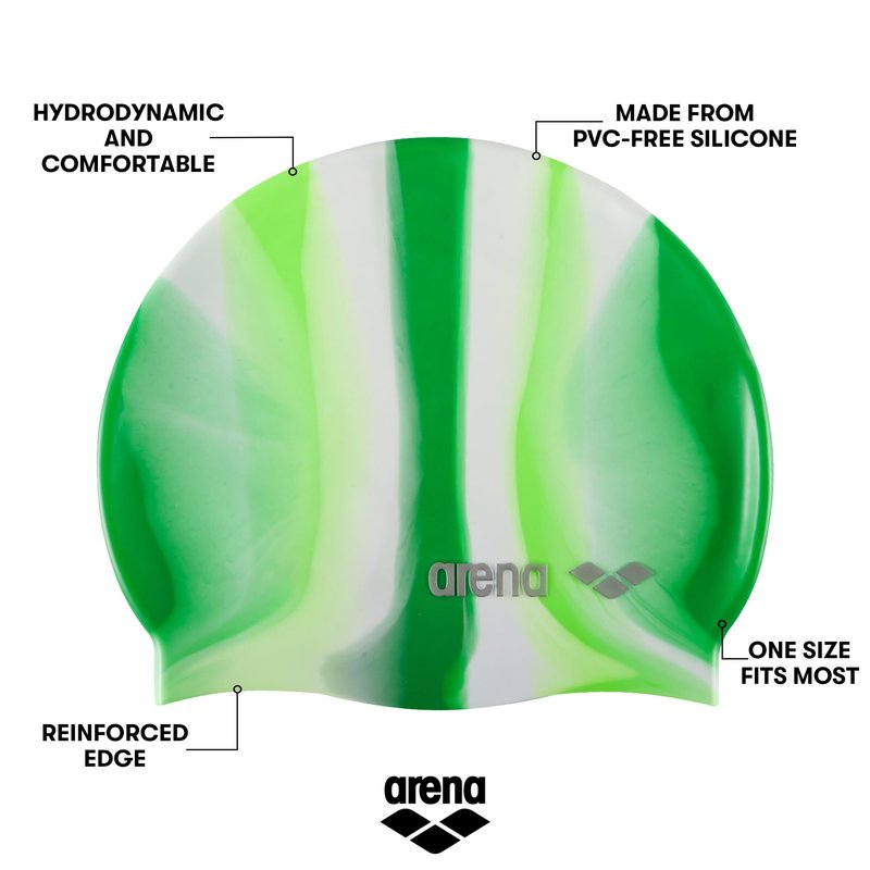Arena Pop Art Unisex Elastic Silicone Swim Cap for Adults, Training Water Sports Fitness Swimming Gear, Chlorine Protection Pool Hat, Pop Lime/Green