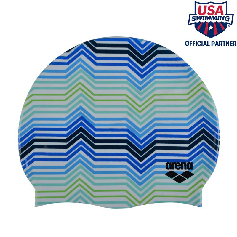 Arena Print 2 Unisex Silicone Swim Cap for Adults, Women and Men Intensive Training Comfortable Non-Slip Long Hair Swimming Hat, Stripes