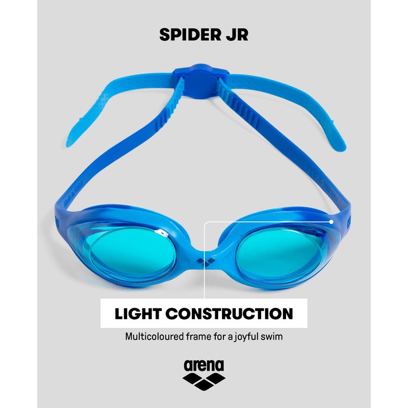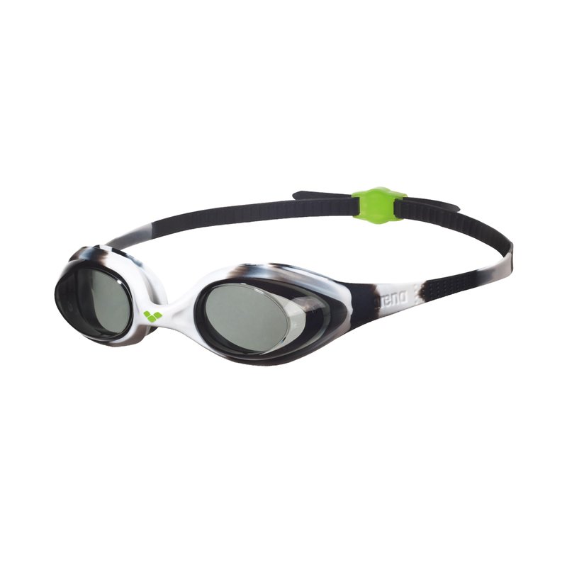 Arena Unisex Youth Spider Junior Swim Goggles Girls and Boys Ages 6 to 12 No Fog Non-Mirror Lens Easy to Adjust Strap No Leak, Black/White/Clear