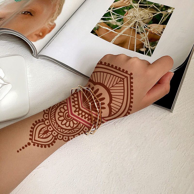 - DURABLE, WATERPROOF,LASTING ---henna tattoo can lasting for 3-5 days, these fake tattoos are waterproof so you can swim,take shower without worry. Easy to apply in 10-20 seconds with just water and easily removed by rubbing body oil, olive oil.