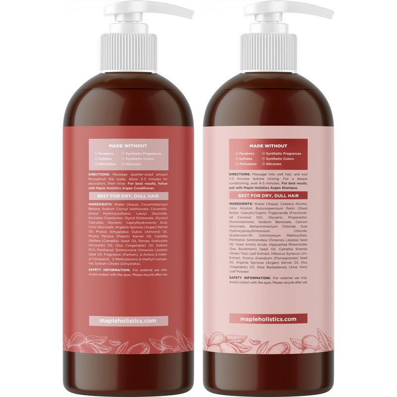 - Shampoo Benefits - Try our argan oil of Morocco shampoo for dry hair and frizz management and experience softer locks that nourish your hair from the scalp and see the Maple Holistics difference