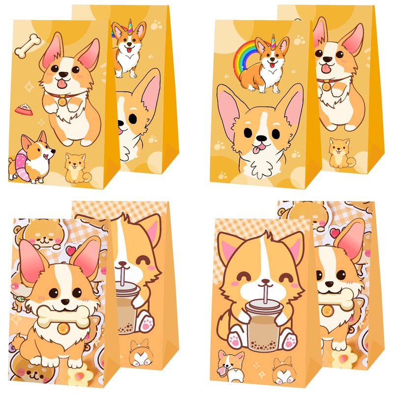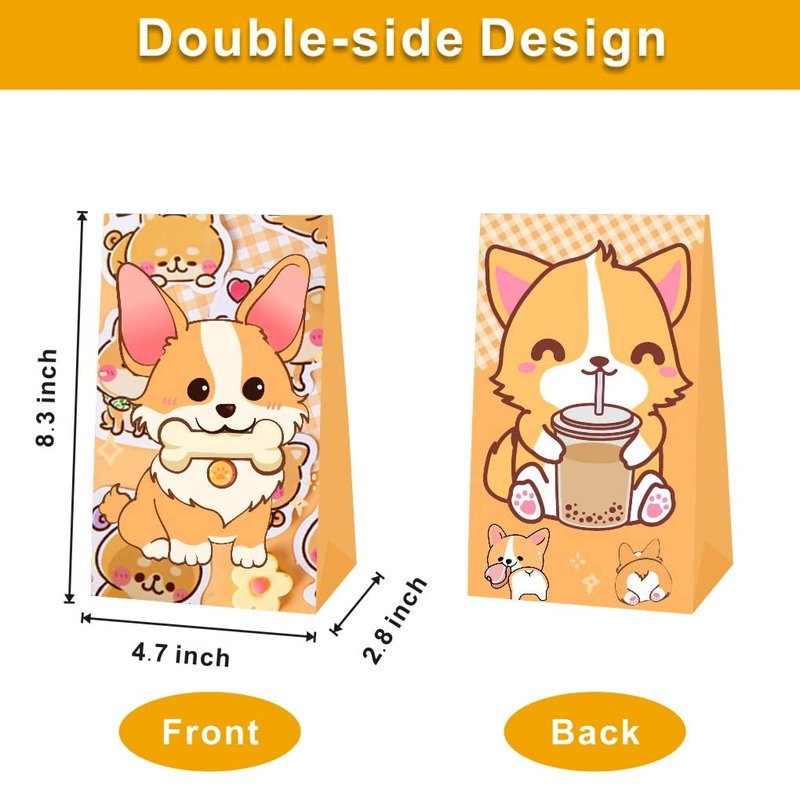 - 【Package Include】12 Pack Corgi party bags for kawaii themed birthdays, Goodie Bags measure 8.3"H x 4.7"W x 2.7"D