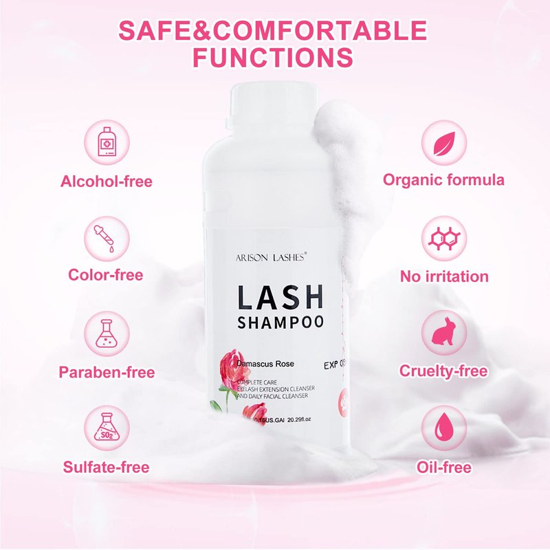 Arison Eyelash Eyelash Extension Shampoo 600ml / Eyelid Foaming Cleanser/Wash for Extensions and Natural Lashes/Paraben & Sulfate Free Safe Makeup & / Professional & Self Use (Rose)