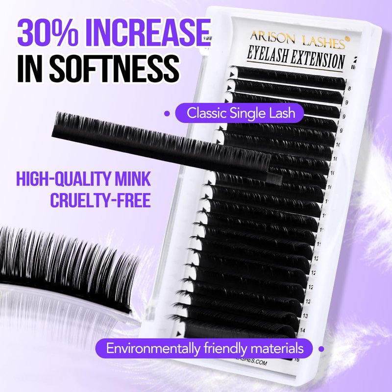 Arison Lashes Classic Lash Extensions Soft Lashes 20 Rows Mixed Tray D 8-16mm Curl 0.05 Thick Volume Pestañas Pelo a Pelo