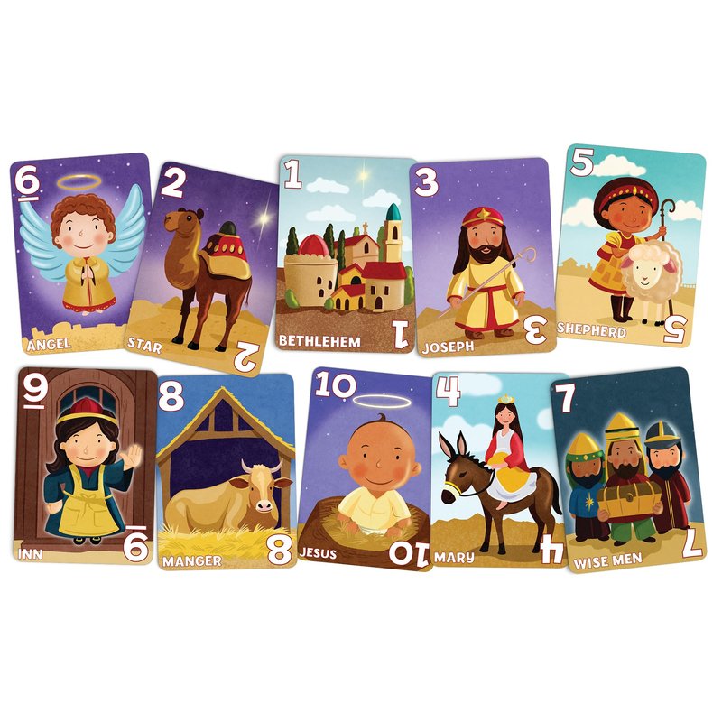 - Christmas Fun: Enjoy a fun, heartwarming twist on classic card games with this adorable version of Go Fish and Old Maid, all in one deck. Featuring iconic images from the nativity story, this game is perfect for family game nights, holiday party, gifts for boys and girls, or stocking stuffers for kids