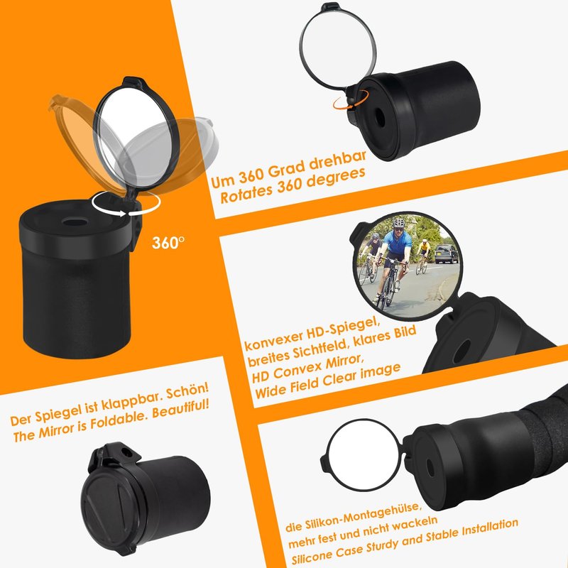 Arkham Bicycle Mirror for Handlebars, Mini Rear View Mirror, Foldable, Rubber Mounting Sleeve for Handlebars, Handlebar Tail Mirror, 360° Rotatable Universal Bicycle Mirror for Road Bike