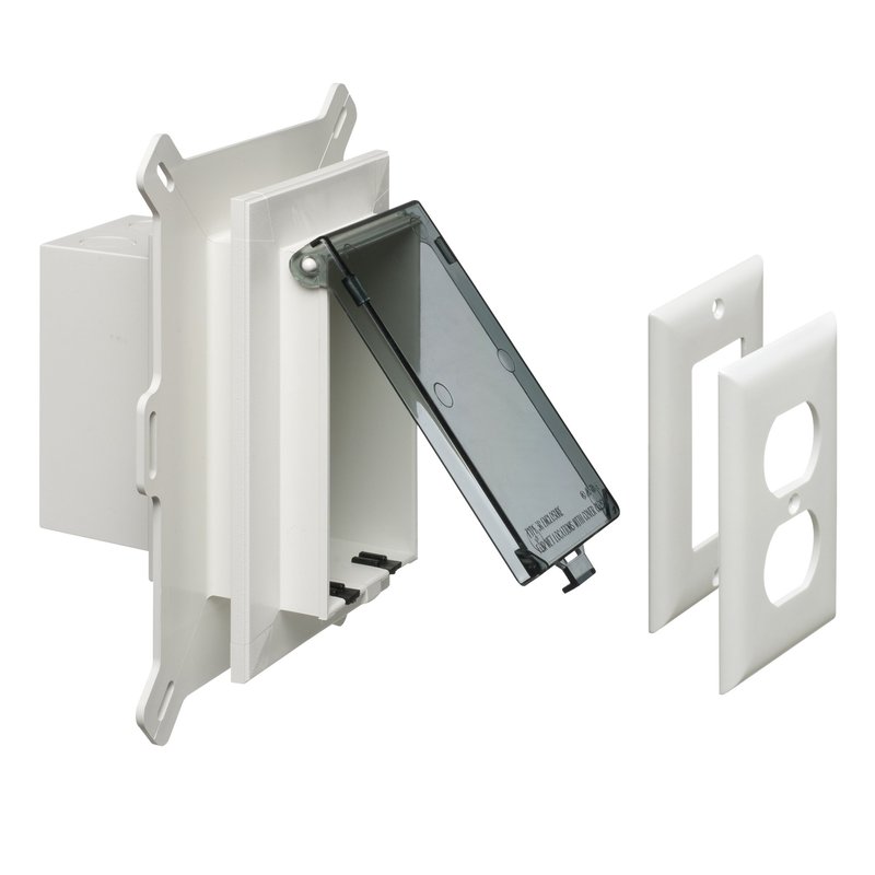 Arlington DBVS1C-1 Low Profile IN BOX Recessed Outlet Box Wall Plate Kit for New Vinyl Siding Construction, Vertical, 1-Gang, Clear