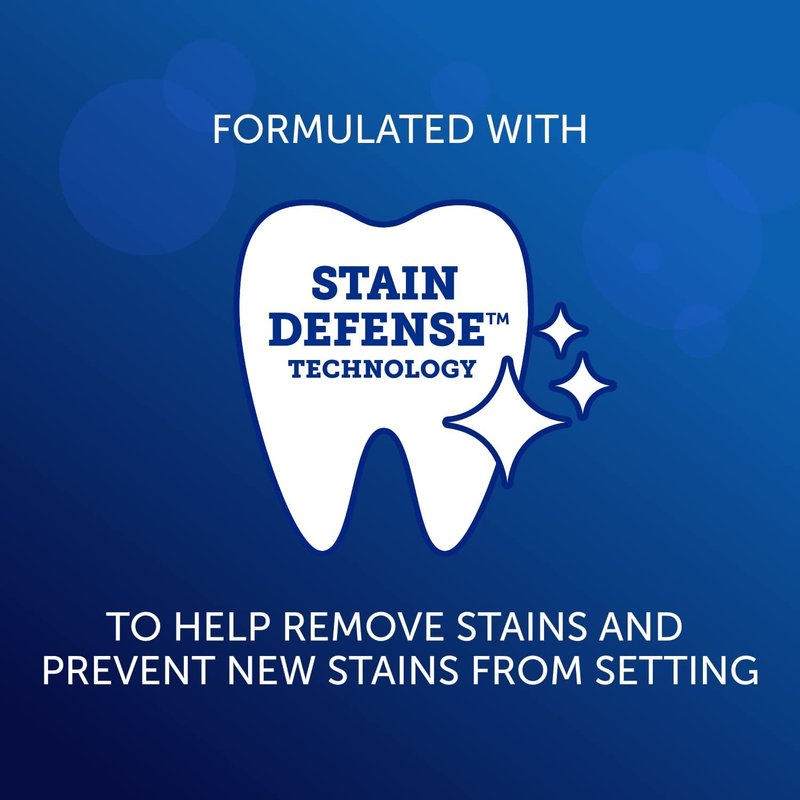 - FEATURES: Stain Defense Technology that helps gently remove stains and prevent new ones from setting; To deliver a 2 shade whiter smile
