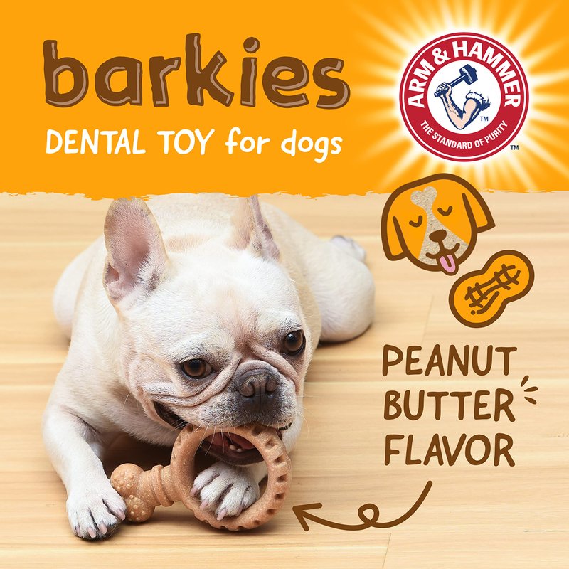 - Redirect destructive chewing into positive playtime with Barkies that act as both a fun toy and a healthy dental chew