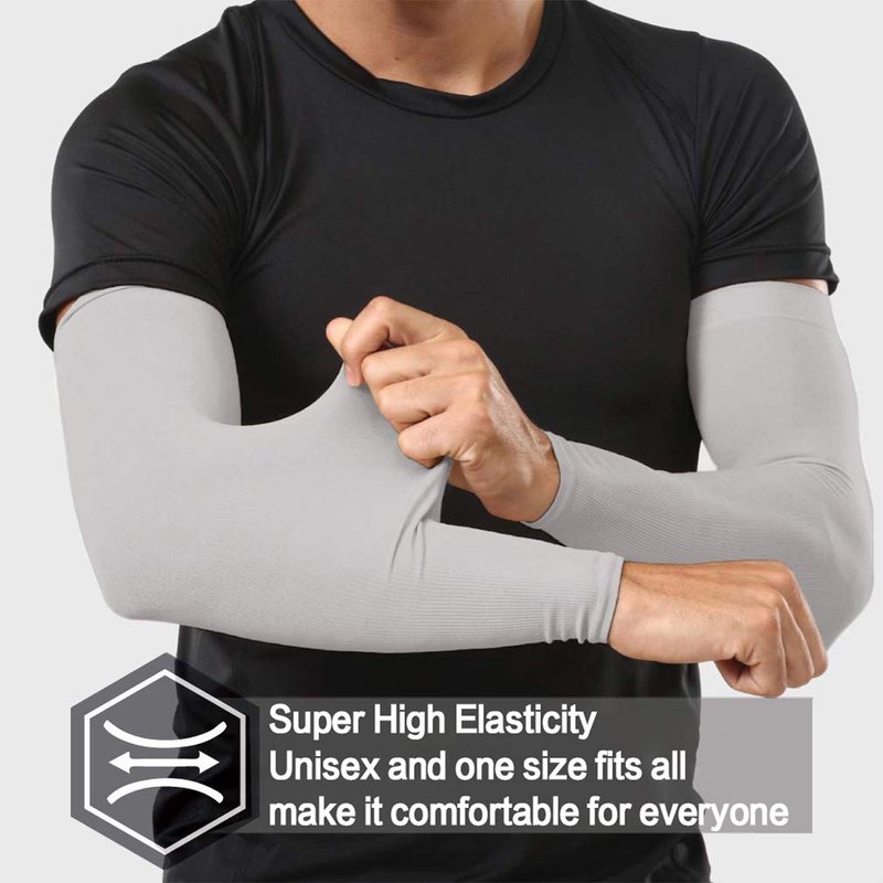- DURABLE MATERIAL - Cooling Arm Sleeve is made of durable, weather resistant and stretchy material. Arm Covers are chemical FREE and completely safe for you and your kids. Material is breathable, dries fast, wicks moisture away from the skin and makes your skin feel fresh all day.