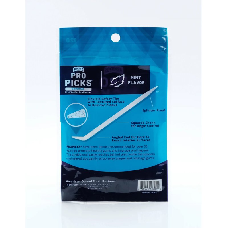 The ProPick Original features include the original angled tri-taper safety tip design with the squared shank and flexible tips but now also includes our new more rigid shank with textured finish for easier griping and better cleaning, a refreshing mint flavor and 20% more product in a convenient on-the-go resealable pouch. Dentist recommended.