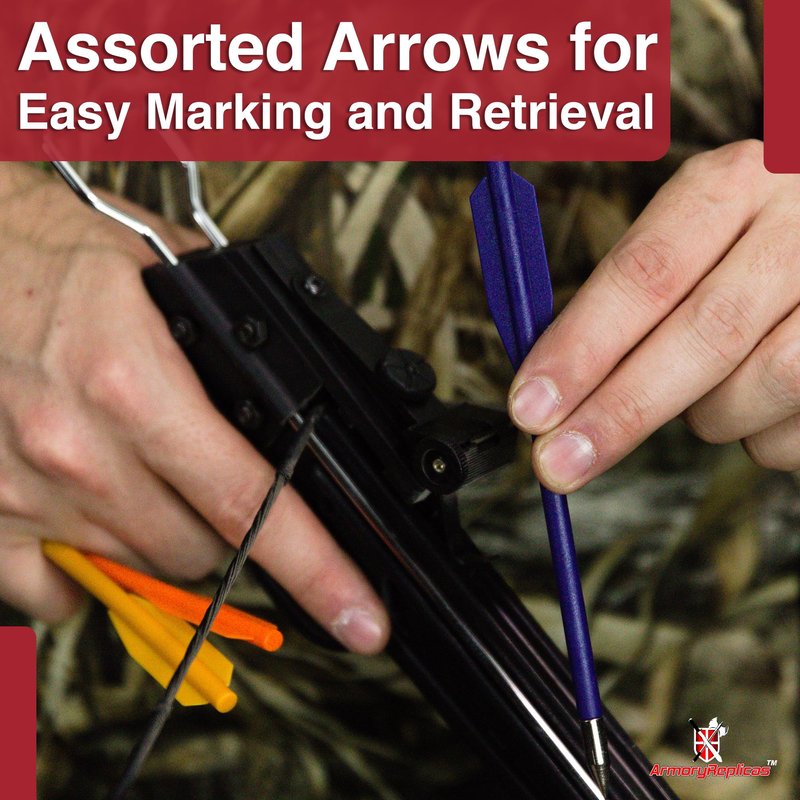 - VALUE PACK OF 6 ARROWS: Upgrade your hunting experience with this pack of six 21.25-inch arrows. Compatible with 150 lb crossbows. Target practice has never been more exhilarating with these vibrantly-colored arrows featuring a pink-red shaft and neon fletching that can be spotted from a distance for easy marking and retrieval.
