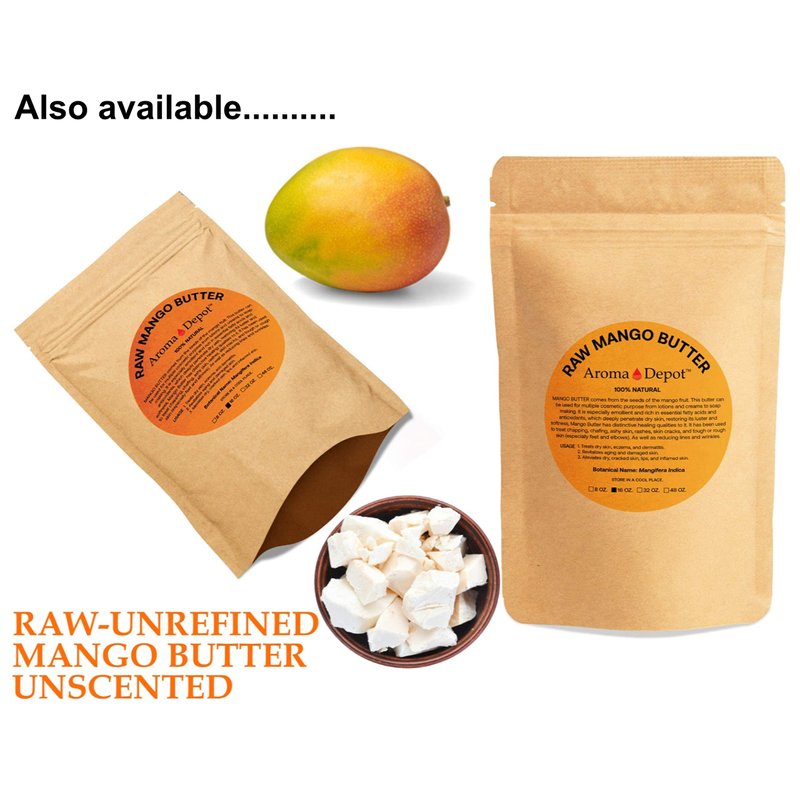 Aroma Depot 1lb / 16 oz Raw Mango Butter Unrefined 100% Natural Pure Great for Skin, Body, Hair Care. DYI Body Butter, Lotions, Creams Reduces Fine Lines, Wrinkles, used for eczema psoriasis