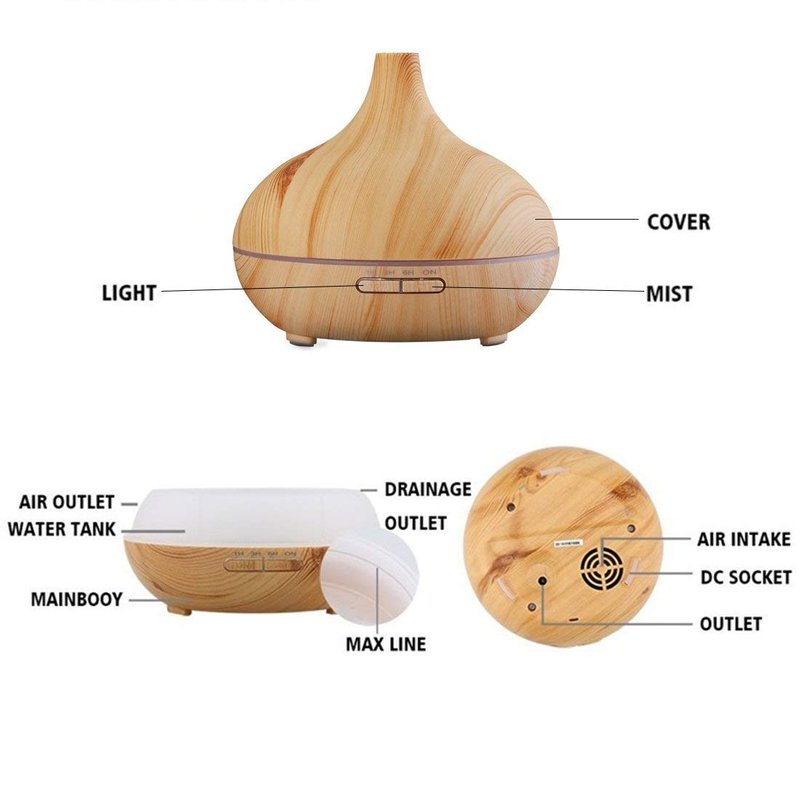 - ★【ESSENTIAL OIL DIFFUSER】A truly multi-functional aroma diffuser! Working as a humidifier for essential oils it pumps diffuser oil in a micro-fine vapor, as humidifiers for the bedroom and perfect humidifiers for office, it provides air with moisture, as a night light available in 7 Soothing LED Light. This aroma diffuser is coated with wood grain, which makes it look very natural and primitive.