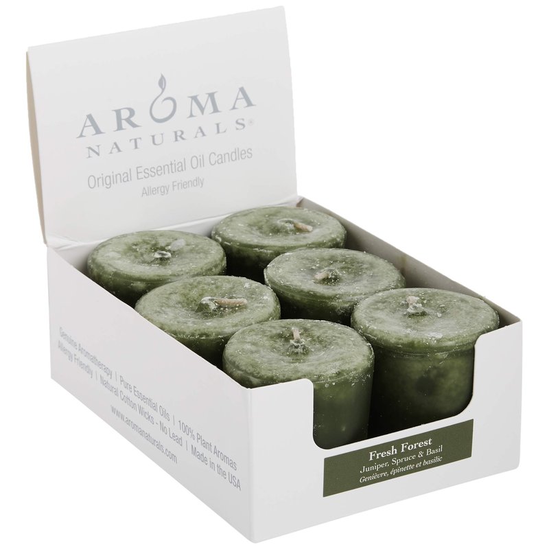 Aroma Naturals Votive Candles Essential Oil with Juniper Spruce and Basil, Evergreen Holiday, 6 Count