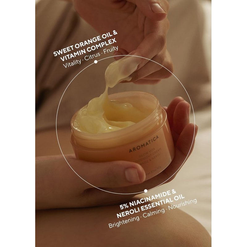 AROMATICA Glow Vita Goodnight Cream Orange & Neroli 3.1fl oz/90g - Night Cream Moisturizer For Face & Neck | Anti Aging Wrinkle Cream with Vitamin C, 5% Niacinamide