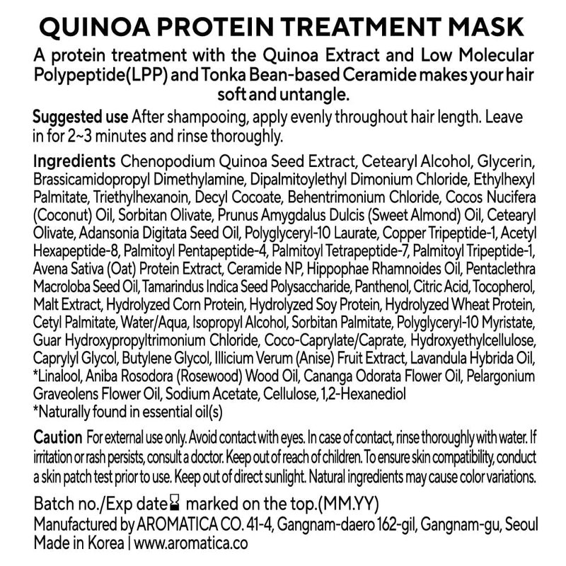 AROMATICA Quinoa Protein Hair Treatment 5.41oz / 160ml, Silicone free, Sulfate Free/Nourish, Moisturizes, and Adds Shine