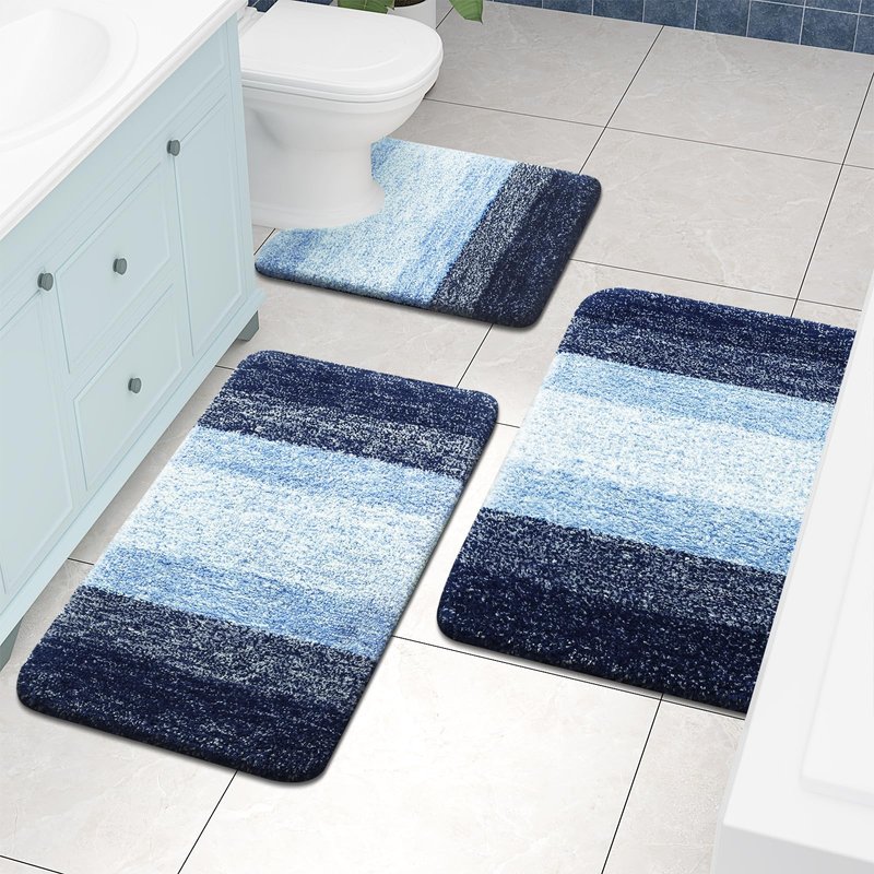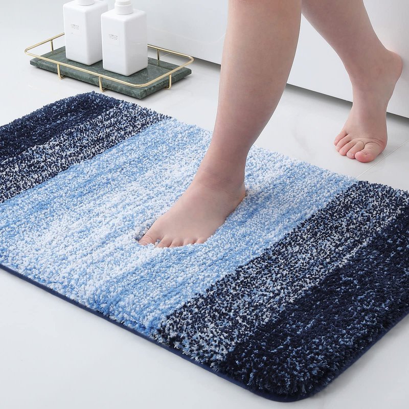 Arotive ombre bathroom mat is made from nice velvet material, ensuring a soft and comfortable touch, along with good water absorption and durability. Its design features a stylish ombre color pattern, available in multiple colors to suit various decor preferences. This mat is suitable for use in bathrooms, kitchens, bedrooms, and entryways, enhancing the decor while providing a comfortable feel underfoot and non-slip protection.