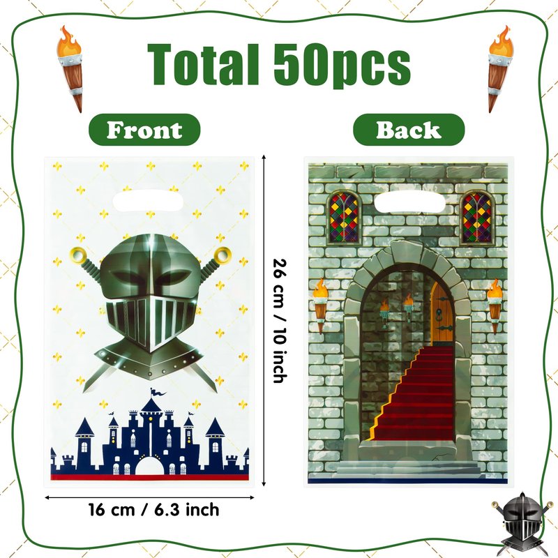 - Medieval Favor Bags: The package includes 50pcs medieval knight plastic party bags, the perfect touch for celebrating a medieval castle themed birthday party or as a gift bag for kids and friends. Provides enough for your party, event, or everyday use.