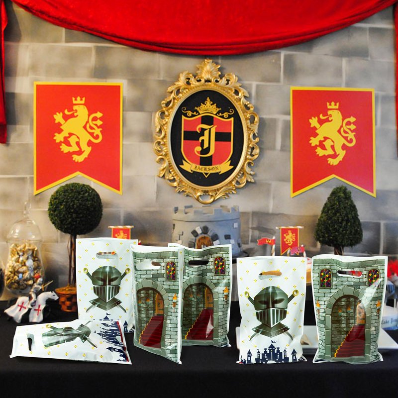 - Medieval Knight Theme Design: Our party decorations bags are designed with various classic medieval patterns, such as helmet, knights and castles which are in line with the the theme of medieval parties, creating a strong atmosphere. Create a full medieval knight style for you. Bag
