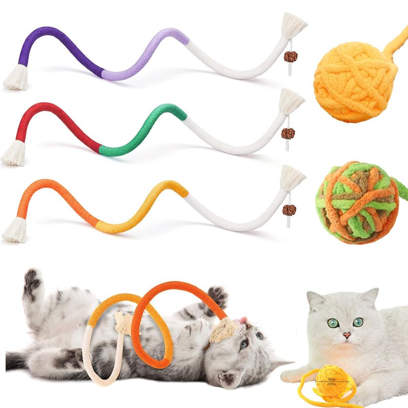 - 【Quiet Play】 These soft colorful ropes provide enriching quiet playtime without bothering cat owner's sleep or life. Your kitty will love the funny snake-like shapes, enhancing their playtime with every pounce and bite.