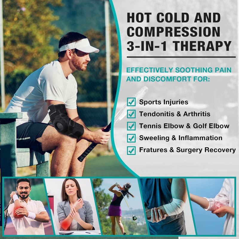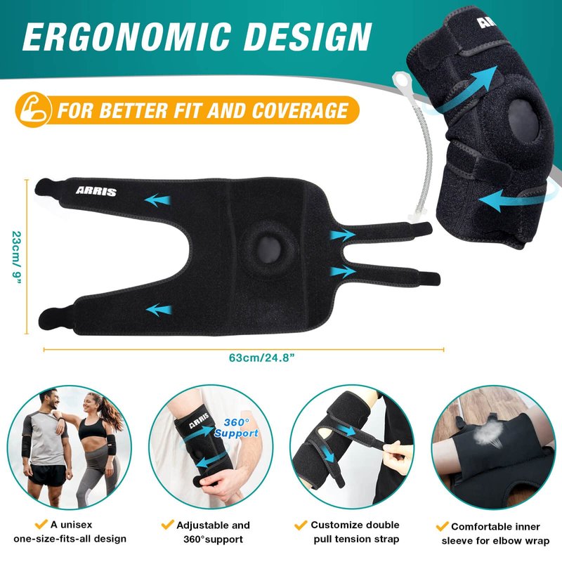 - β ππ¬π¬% π¦πππ ππ‘π π π’π‘ππ¬ ππππ ππ¨ππ₯ππ‘π§ππ - The ARRIS elbow ice pack wrap can reduce pain, swelling and inflammation caused by tennis elbow, golfer elbow,sports injury, surgery, arthritis, or overuse. If for any reason you are not 100% satisfied with it, please feel free to contact us. We offer a 1-year FREE, no-hassle replacement!