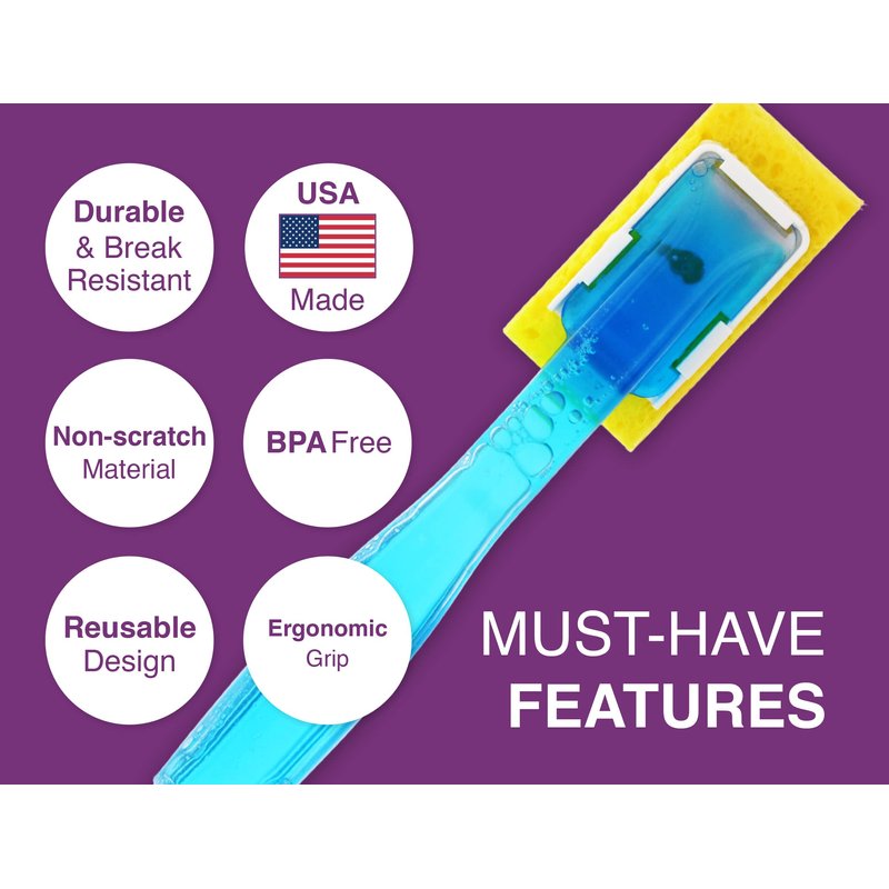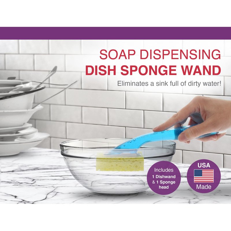 - Must-Have Features - Each food-safe, BPA free plastic dish soap sponge wand is MADE IN THE USA, reusable, durable and break resistant. It dispenses detergent as you wash, ideal for everyday cleaning tasks in your kitchen, bathroom and more.