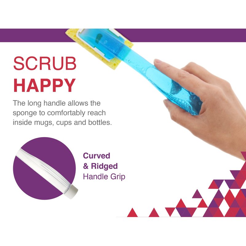 - Squeaky Clean Results - Handy built-in scraper helps to remove stuck-on food from plates, pans, dishes and surfaces. The long handle allows you to reach nooks, crannies and the inside of water bottles and tumblers.