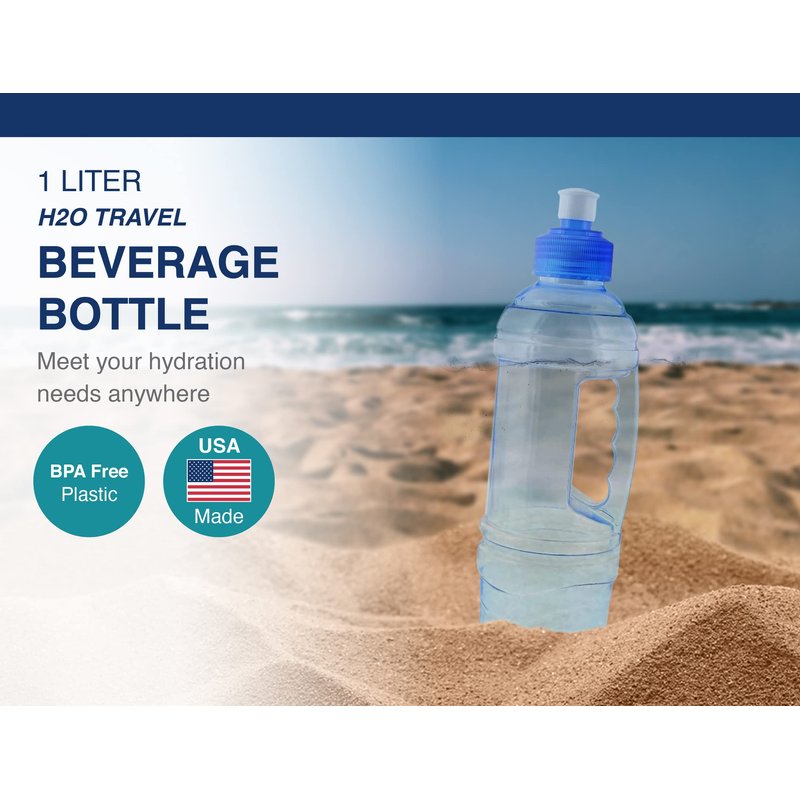 Arrow H2O On The Go Water Bottle, 1 Liter - Clear Plastic Water Bottle with Push Cap - Made in The USA, BPA Free - Built-in Convenient Handle, Leakproof - Ideal for The Gym and Sports Practice