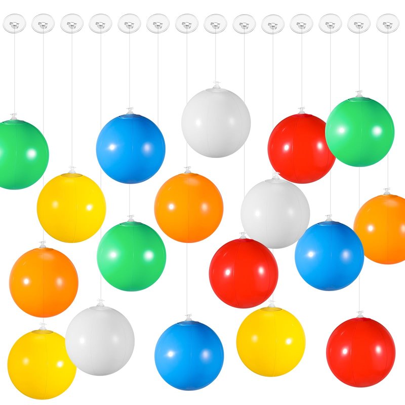Features: Hours of fun: Whether playing catch, volleyball, or other beach ball games, this set ensures hours of entertainment for adults. It promotes physical activity, coordination, and social interaction, while adding a colorful and playful touch to any gathering. Reliable: Our mini beach ball set is designed with safety in mind. The quality material and reliable construction make these balls resistant to wear and breakage, ensuring they withstand energetic play. Specifications: Main material: PVC Color: red, blue, yellow, orange, green, white Size (about): Mini beach ball: 4.7 inches/ 12 cm Hanging rope: 328 ft/ 100 m in length, 0.02 inches/0.4 mm in diameter Hooks: 0.79 inch/ 2 cm Package includes: 36 x Mini beach ball 4 x Hanging rope 100 x Hooks Notes: Manual measurement, please allow slight errors on size. The color may exist a slight difference due to different screen displays.