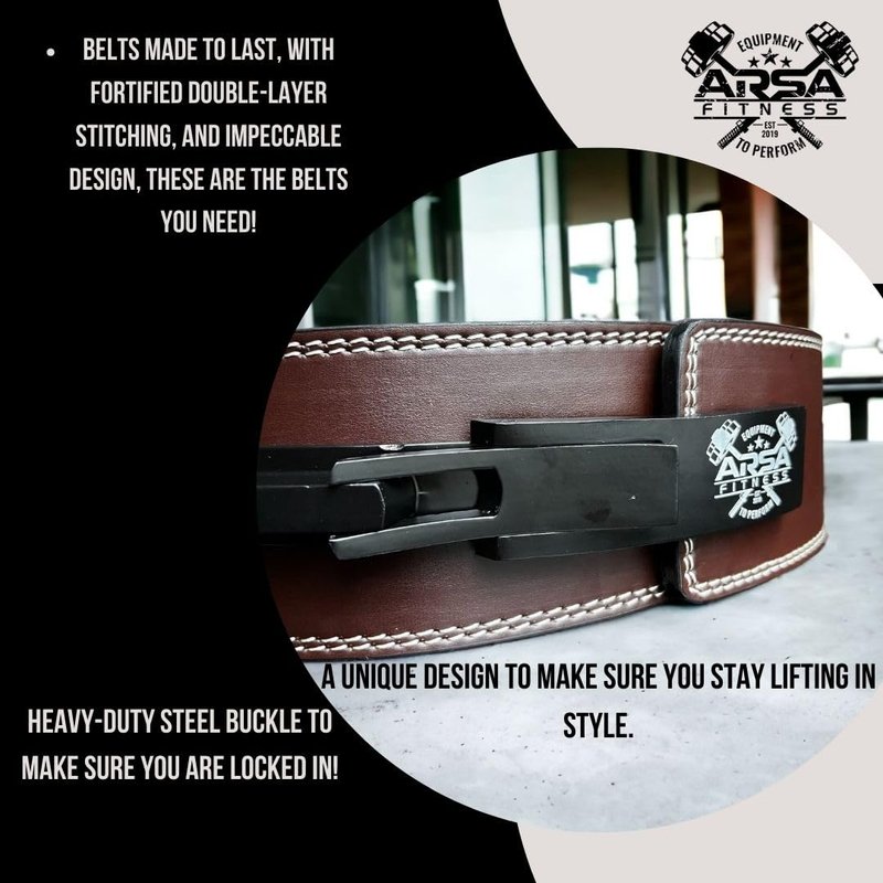 Introducing the Arsa Fitness Lever Belt: Elevate Your Workout Experience Are you ready to take your fitness journey to the next level? Look no further than the Arsa Fitness Lever Belt – the ultimate tool to support your strength and performance in the gym. Crafted with precision and designed for both beginners and seasoned athletes, this belt is a game-changer for weightlifting and powerlifting enthusiasts. Key Features: Premium Quality Materials: Our lever belts are constructed from top-grade materials, featuring a durable leather or synthetic leather exterior. This ensures longevity and resistance to wear and tear, so you can count on it for years of reliable use. Leverage Buckle System: The standout feature of the Arsa Fitness Lever Belt is the innovative lever buckle system. This mechanism provides rapid, secure, and precise adjustments with a simple flick of the lever. No more fumbling with traditional prong belts; you can achieve the perfect fit in seconds. Optimal Support and Stability: Whether you're performing squats, deadlifts, or other heavy compound exercises, this belt offers outstanding lumbar support. It stabilizes your core and helps prevent injuries, enabling you to lift heavier and reach your fitness goals. Ergonomic Design: The Arsa Fitness Lever Belt is engineered for comfort and performance. The contoured shape and interior padding provide a snug fit that doesn't dig into your skin, allowing you to focus on your lifts without distractions. Variety of Sizes: Available in a range of sizes to cater to all body types and fitness levels, ensuring that everyone can benefit from the support and stability this belt offers. Aesthetically Pleasing: Not only is the Arsa Fitness Lever Belt functional, but it's also aesthetically pleasing. Its sleek design and embossed Arsa Fitness logo make it a stylish addition to your workout attire. Suitable for All Skill Levels: Whether you're a novice lifter looking to improve your form or an experienced athl