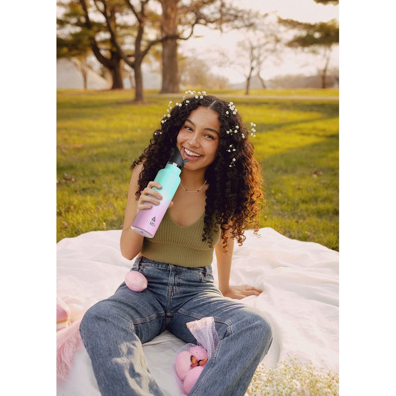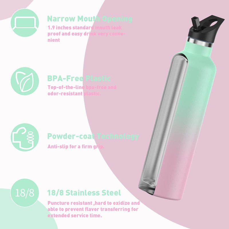 - Product Feature: Frosted matte powder coat with various gradual change colors. The anti-slip carbon coating surface ensucs a good grip and protect metal flask bottle from paint loss and any scratches. Comes with 1 straw lid, 1 handle lid, 2 straws and 1 straw brush. Vacuum insulated Water Bottle has more sizes and colors.