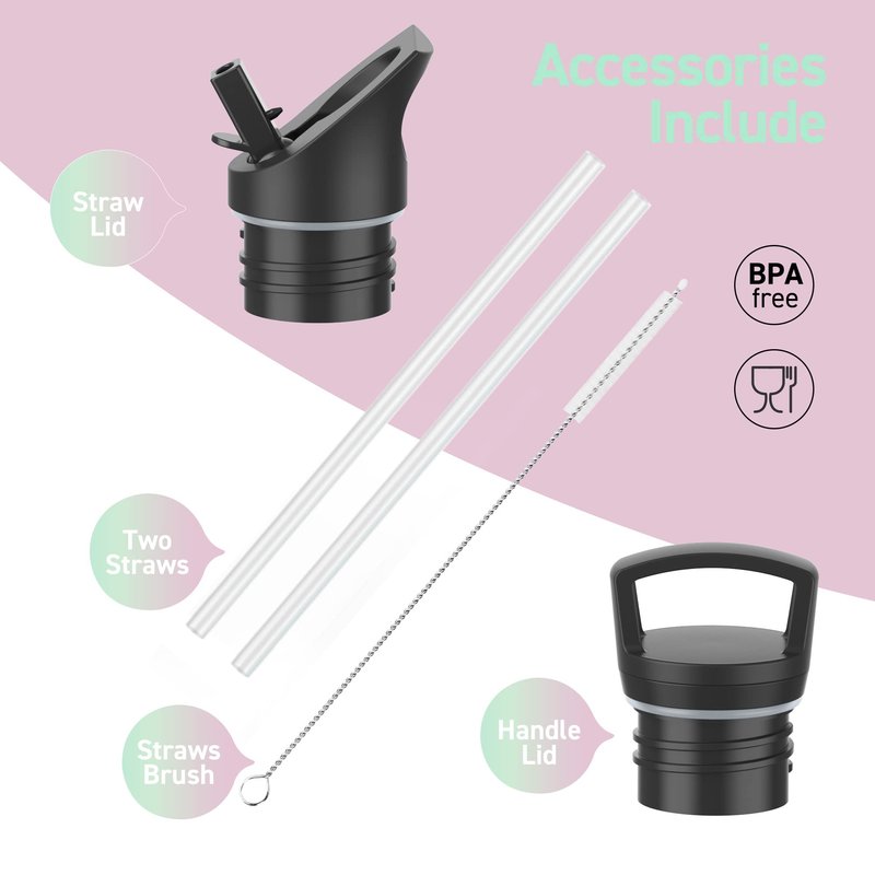 - Thoughtful Lid Design(bpa free): Standard mouth stainless steel water bottle has two different stlyes of lids, straw lid and handle lid with strainer so you don't have to worry about ice slipping into mouth. Vacuum water bottle comes standard with an attached PP material screw cap that creates on air–toght vacuum send and is great for travel and outdoor use.