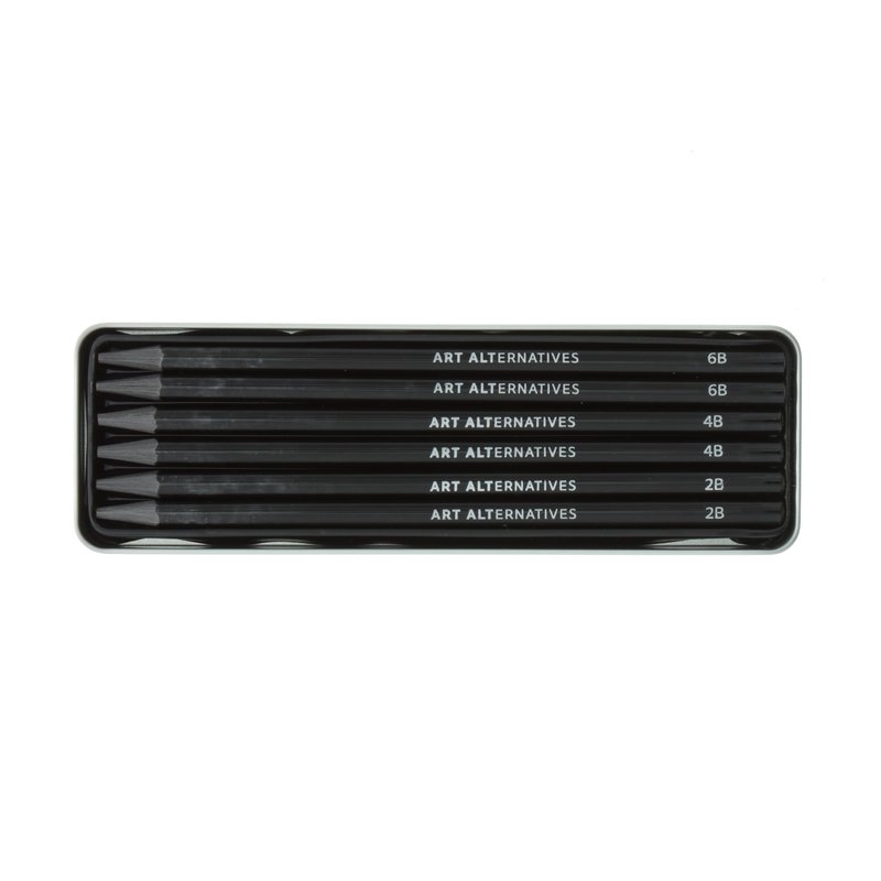 Art Alternatives Woodless Graphite Pencil Art Tin Set, 6-Pieces - 2B, 4B, 6B soft grade pencils for drawing and sketching
