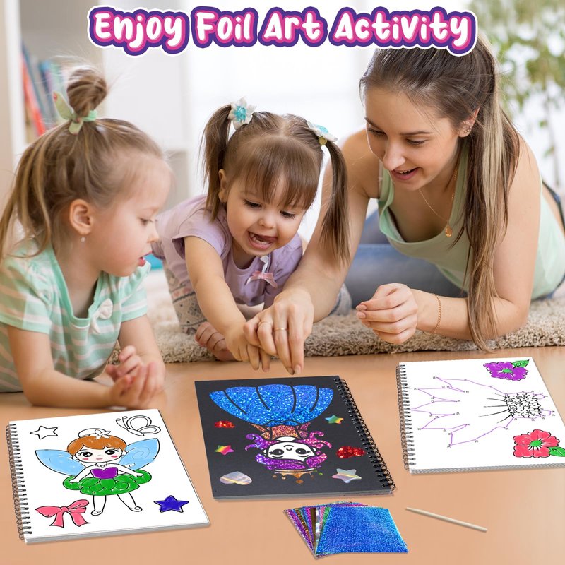 - Foil Art Craft Activity Kits: parents will love this no-mess no glue creative foil dress up activity for kids,it increase hands-on ability and creativity and keeps kids engaged and entertained at home or on the travel, during play date, art classes in the classroom without worrying about any mess.
