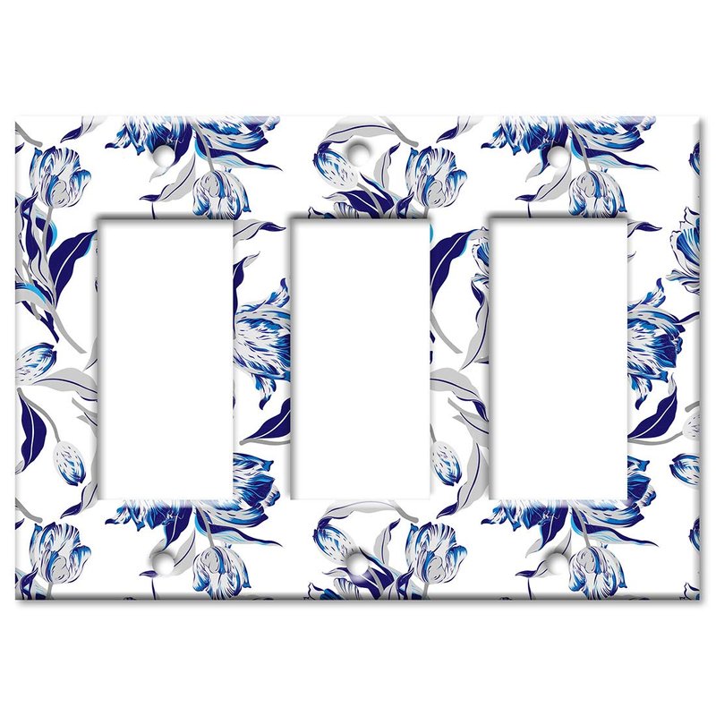- Blue and Gray Flower Toss - Triple Gang decora rocker Wall Plate - Size: 6.38 x 4.50